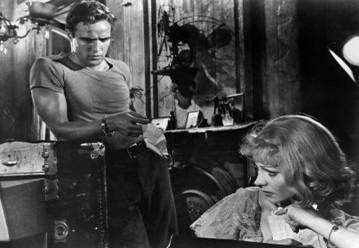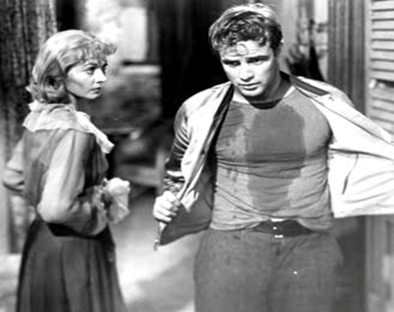 Kowalski (Brando) with his wife, Stella (Kim Hunter). Although he is abusive towards her, she loves him, and she admits his bad boy violence excites her. He is the classic Alpha.