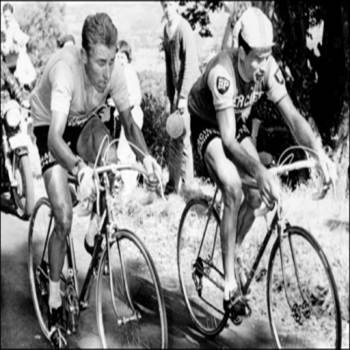 One of those Tour winners was a Frenchman named Jacques Anquetil (1934-1987). Anquetil is one of the greatest cyclists of all time, being the first to win the Tour five times, a feet only surpassed by Lance Armstrong. He was known for his extremely graceful and elegant style of riding, and was the dominant cyclist of his generation. Like all great champions he had his rivals, good but not as good as Anquetil. His most famous rival was a fellow French cyclist named Raymond Poulidor. Poulidor is famous as someone who never won the Tour, despite finishing second or third on several occasions, and winning many other races. He was a great cyclist in his own right, but still not as good as Anquetil. One of his nicknames was the “Eternal Second”. In France at the time, the early to mid sixties, a social division arose between those who preferred the more elegant and victorious Anquetil, and those who preferred the more rustic and less successful Poulidor. Friends, families, and neighborhoods were divided on these allegiances. Anquetil represented France as a successful and important nation, Poulidor as a noble but no longer great nation. The term “Poulidor complex” was actually coined by sociologists to describe the post-War image that France held of itself. Yet Poulidor, despite or due to his image as a sympathetic loser, was always more popular in France than the champion Anquetil.