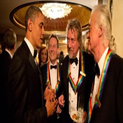 John Paul Jones, Robert Plant, and Jimmy Page, the three remaining members of the band, looking quite respectable with President Obama. They have come quite a long way since they were most likely on Nixon’s enemies list in the early seventies.